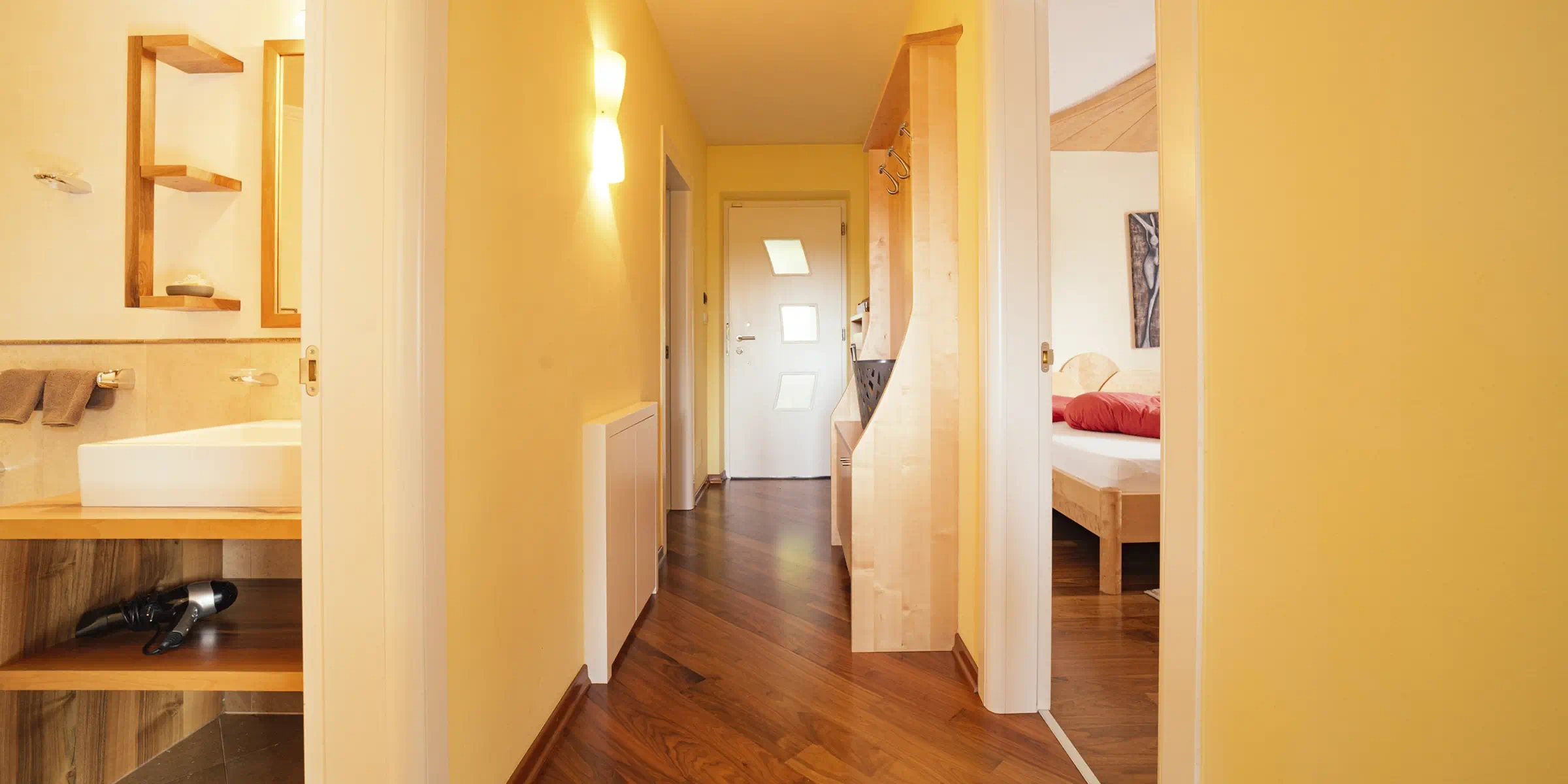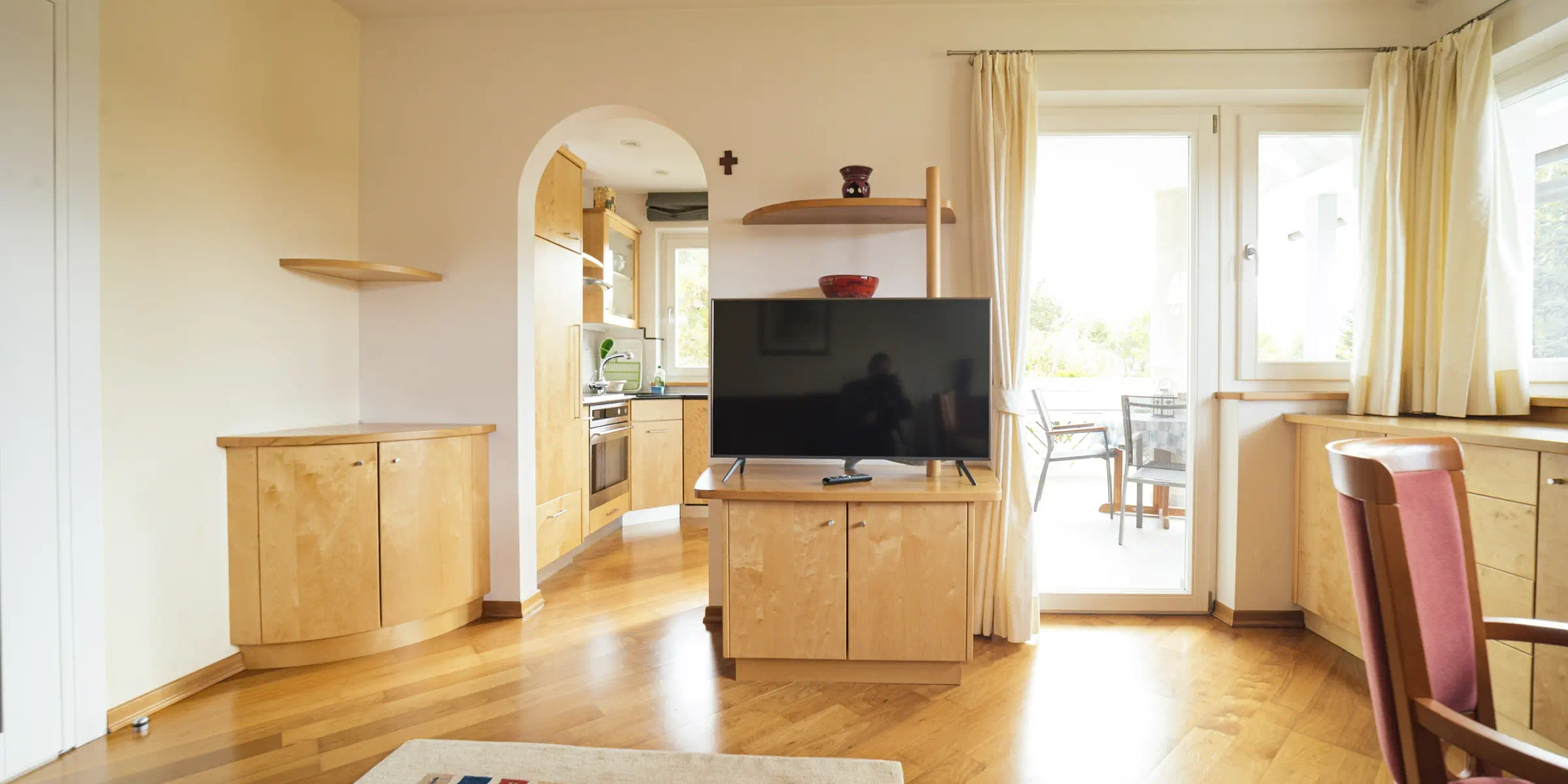 Schön eingerichtetes Appartment im 1. Stock mit Ausrichtung "Süd-Ost". Ein Doppelbettzimmer, ein Einzelbettzimmer, vollausgestattete, abgetrennte Küche, Wohnzimmer, Bad mit Dusche, Bidet und WC, großer Balkon. Haustiere sind nicht erlaubt.