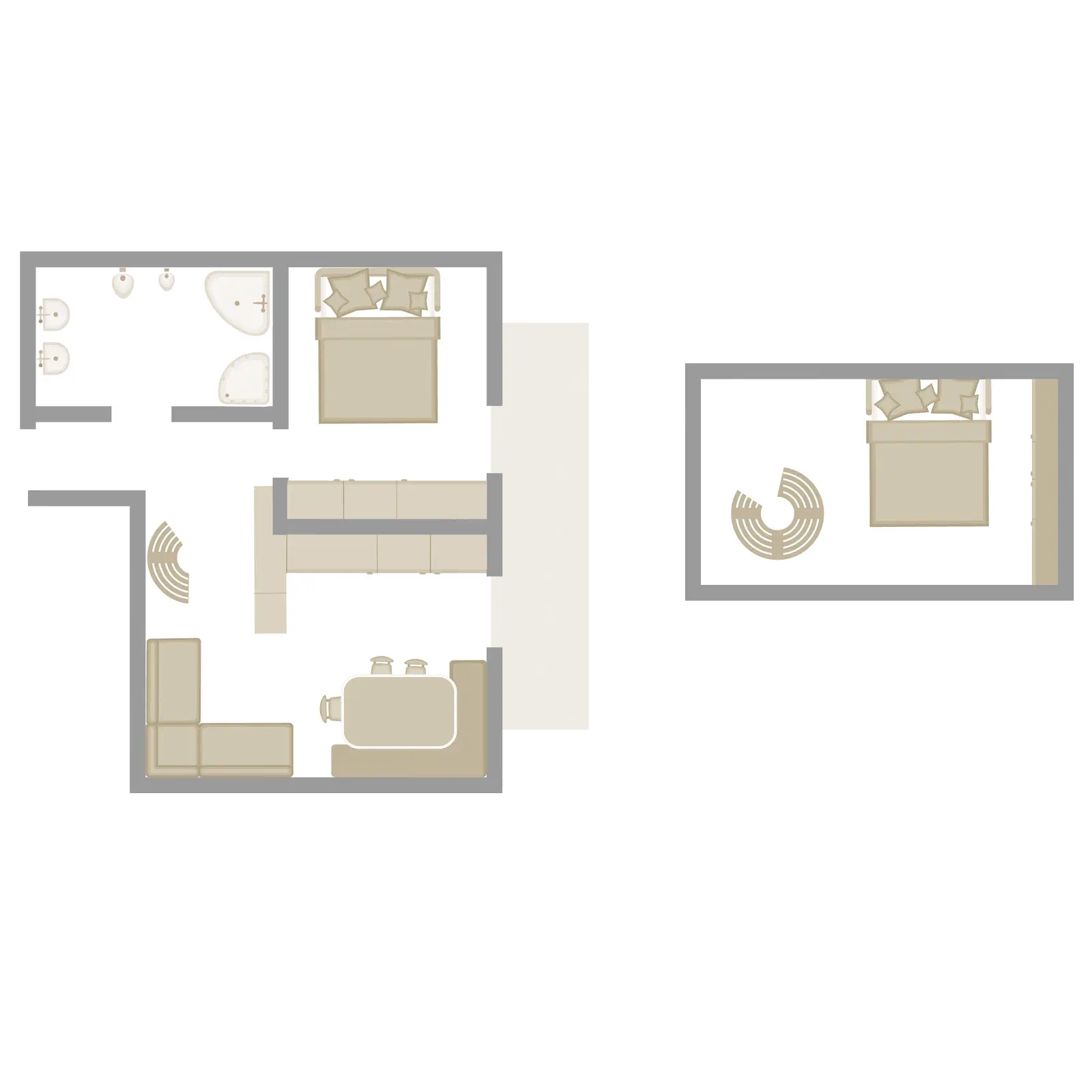 Das größte der 6 Appartment im 2. Stock auf zwei Ebenen mit Ausrichtung "Süd-Ost".